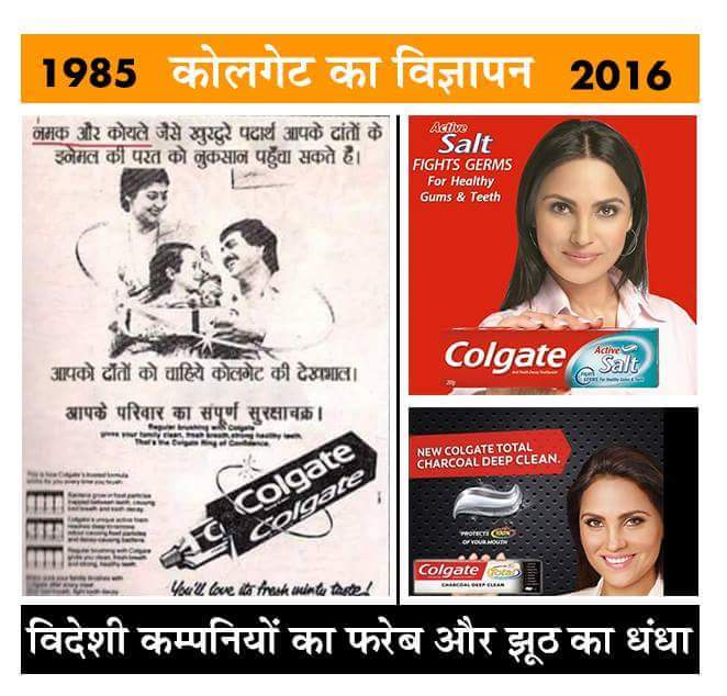 ​નીચેના ઉદાહરણો ફકત ટીખળ માટે ફરતા થયેલા છે પરંતું તેંમા થોડી સચ્ચાઈ છે કે આપડા મહદંશે ભારતીયો ૩૦ વરસ પેહલા સુધી આ બધા સહજ ઉપલબ્ધ વિજ્ઞાન નો ઉપયોગ કરતા હતાં, જે હવે repackaged થયી ને આપણને પીરસવામાં આવે છે જેનો હોંશે ને હોંશે આપણે ઉપભોગ કરીએ છે. મર્મ સમજ્યા હશો એવી અપેક્ષા રાખું છું. ભારતીય સંયુક્ત કુટુંબપ્રથા,યોગ,ધ્યાન,આયુર્વેદ,ખાનપાન ની રીત પર આવી જ રીતે જુનવાણી વિગેરે આક્ષેપો લાગેલા છે ૧૮ મી શતાબ્દીમા અને અત્યારે જ્યારે આપણે પશ્ચિમને એમા જોઈએ એટ્લે ગર્વ લઇએ છીએ. ગુનેગાર આપણેજ છીએ પરંતું એનો મતલબ એ નથી કે આપણે કઇ જાણતાજ નહોતા ખાલી આપણી વેચાયેલિ માનસિકતા એ લઘૂતાગ્રંથિમા આખા સમાજ ને મુકી દીધો છે. આ માનસિક ગુલામી માંથી મુક્તિ મળશે એટલે સાચા અર્થમાં મુકત કહેવાઇશુ. જય ભારત.