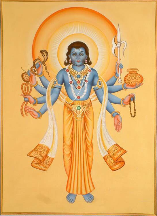 Worship of any mahAvidyA is incomplete without the propitiation of vaTuka: the bhairava in the form of a brahmachArin youth. It is stated in skandayAmaLa that among the nine essentials for mantra-siddhi, guru, gaNapati and vaTuka are of primary importance without their grace, parAshakti is not pleased with the sAdhaka. While vaTuka has sAttvika, rAjasika and tAmasika forms based on kriyA-bheda, he is popularly depicted as below: