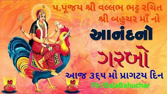 પ.પૂજય શ્રી વલ્લભ ભટ્ટ રચિત શ્રી બહુચર માઁ નો આનંદ ગરબા નો આજ ૩૬૫ મો પ્રાગટય દિન વિ. સં. ૧૭૦૯ ફાગણ સુદ ત્રીજ બુધવાર.આજ ફાગણ સુદ ૩ ને રવિવાર તારીખ ૧૮-૨-૨૦૧૮.